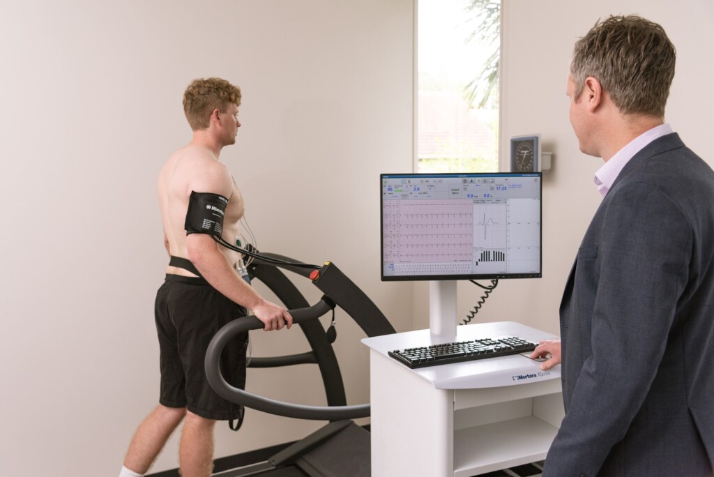La prueba de esfuerzo físico en banda es una herramienta diagnóstica fundamental para evaluar la respuesta de su corazón al ejercicio. Durante este estudio, monitoreamos cuidadosamente su actividad cardíaca, presión arterial y síntomas mientras camina en una cinta, aumentando gradualmente la intensidad. Este procedimiento nos permite detectar posibles problemas en las arterias coronarias, evaluar la capacidad funcional de su corazón, identificar arritmias inducidas por el esfuerzo y determinar el nivel de ejercicio seguro para usted. Es un examen seguro y no invasivo que proporciona información vital para el diagnóstico preciso y la planificación de un tratamiento cardiovascular efectivo.