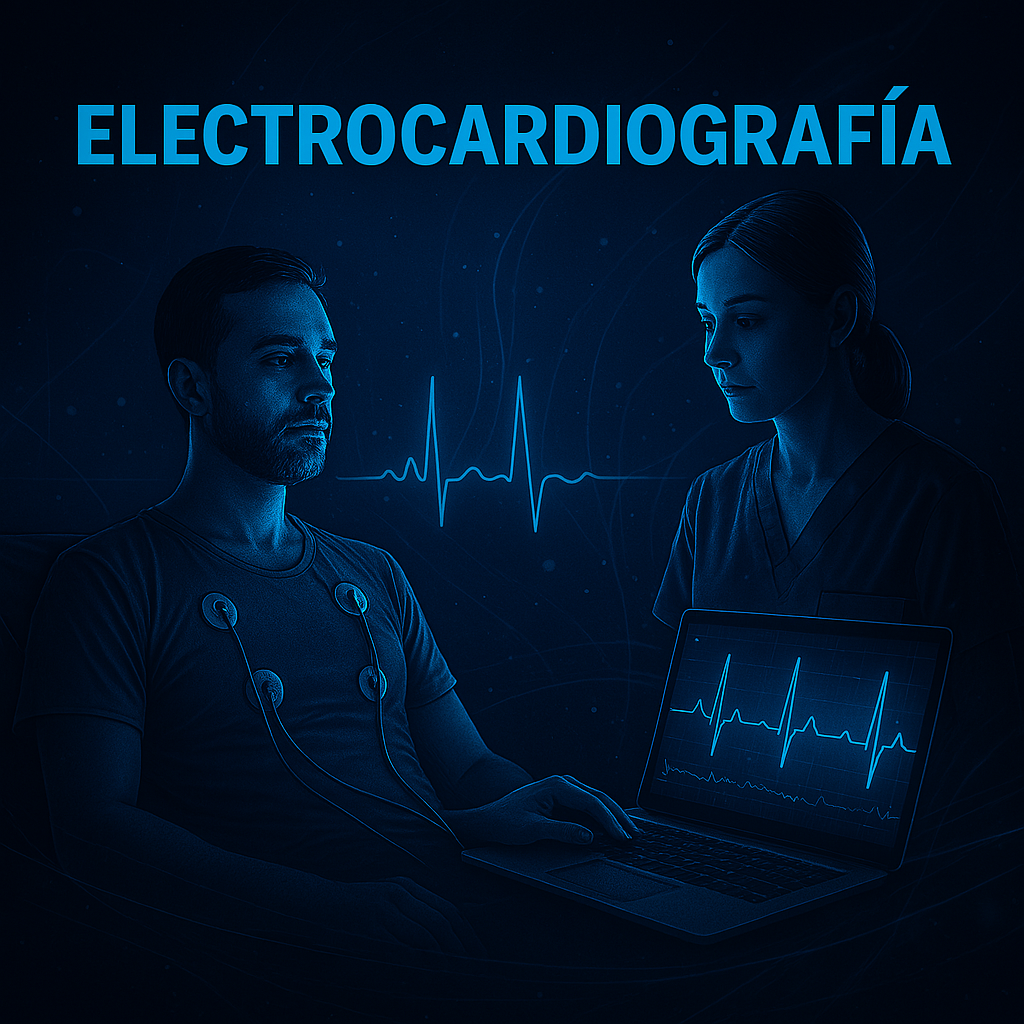 La electrocardiografía (ECG) es un procedimiento rápido, indoloro y esencial para evaluar la actividad eléctrica de su corazón. Mediante la colocación de pequeños electrodos en su piel, registramos los impulsos eléctricos que controlan los latidos de su corazón. Este estudio nos permite identificar una amplia gama de condiciones cardíacas, como arritmias, signos de infarto previo o actual, problemas de tamaño o función de las cámaras cardíacas, y la efectividad de ciertos medicamentos. El ECG es una primera línea de diagnóstico crucial que nos ayuda a obtener una visión instantánea de la salud de su corazón y a guiar los siguientes pasos en su atención.